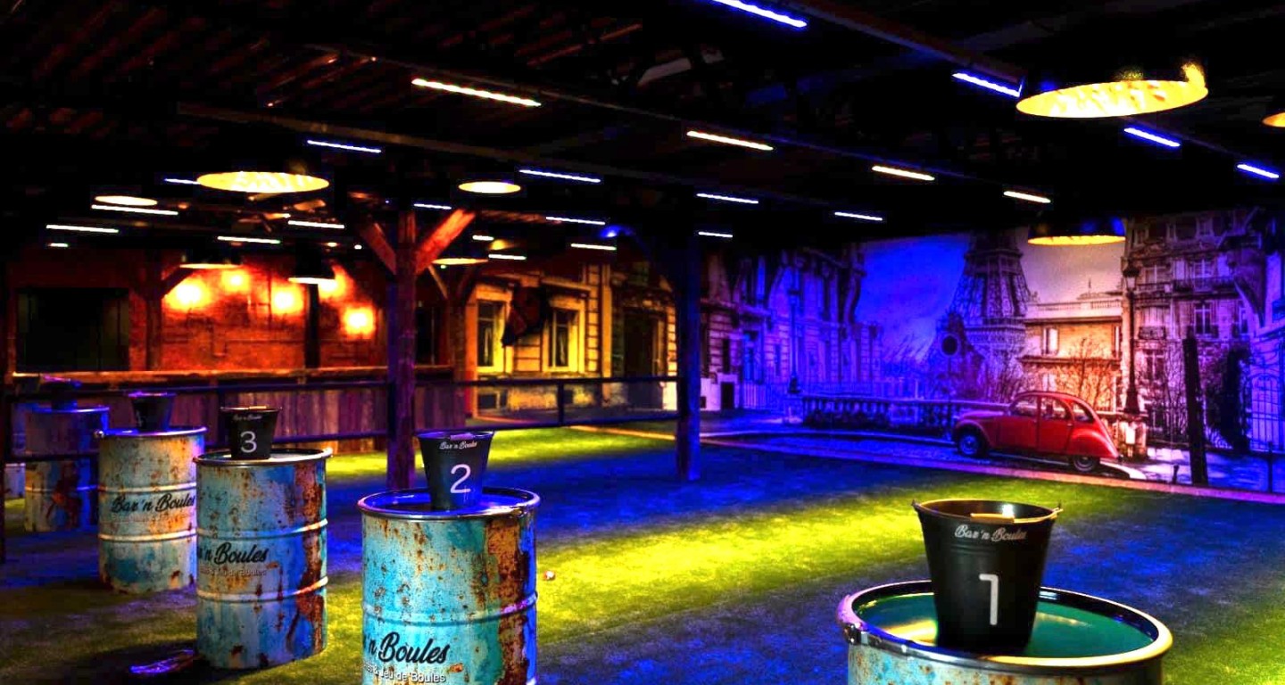 Disco Indoor Jeu de Boules is een unieke combinatie van het traditionele jeu de boules spel met een feestelijke disco-sfeer, inclusief muziek en kleurrijke lichteffecten op 10 banen op de eerste etage.