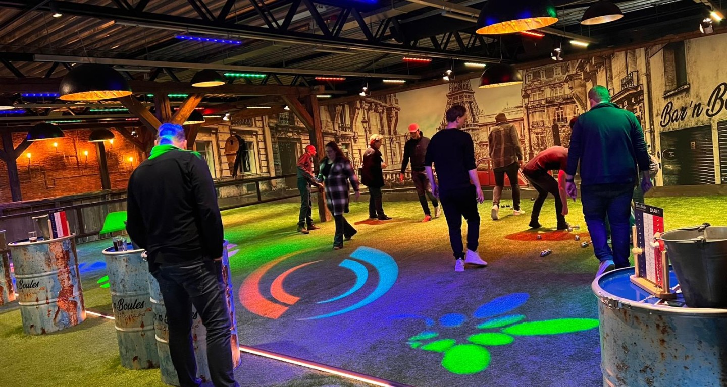 Disco Indoor Jeu de Boules is een unieke combinatie van het traditionele jeu de boules spel met een feestelijke disco-sfeer, inclusief muziek en kleurrijke lichteffecten op 10 banen op de eerste etage.